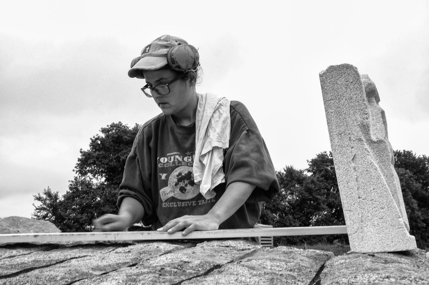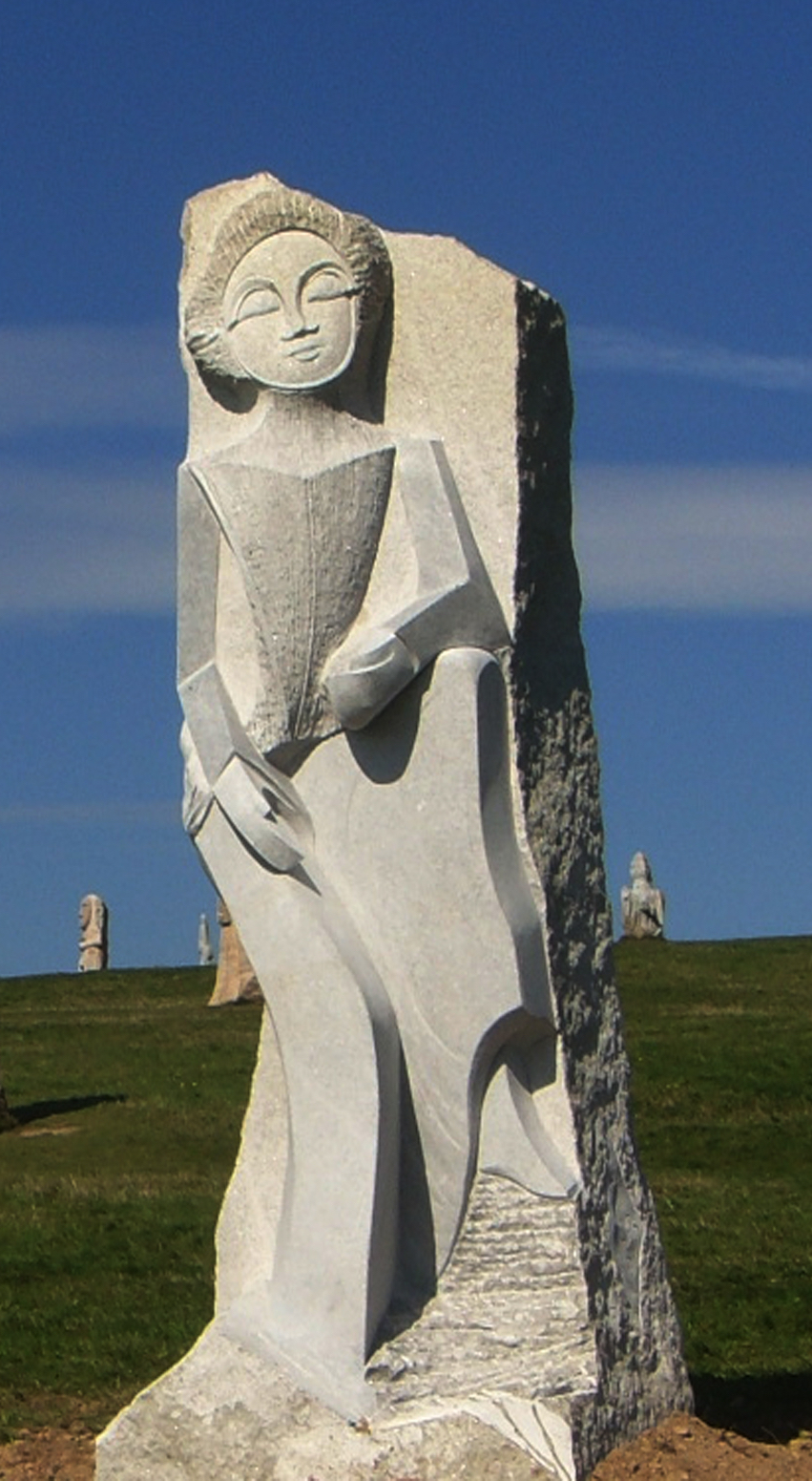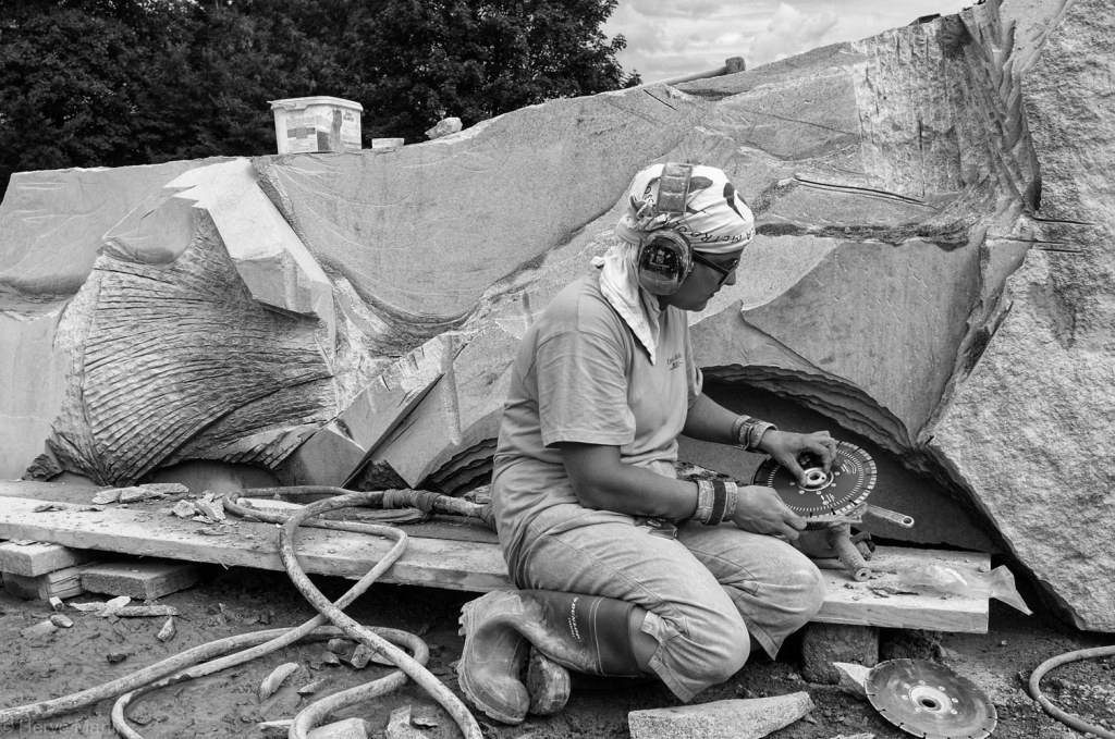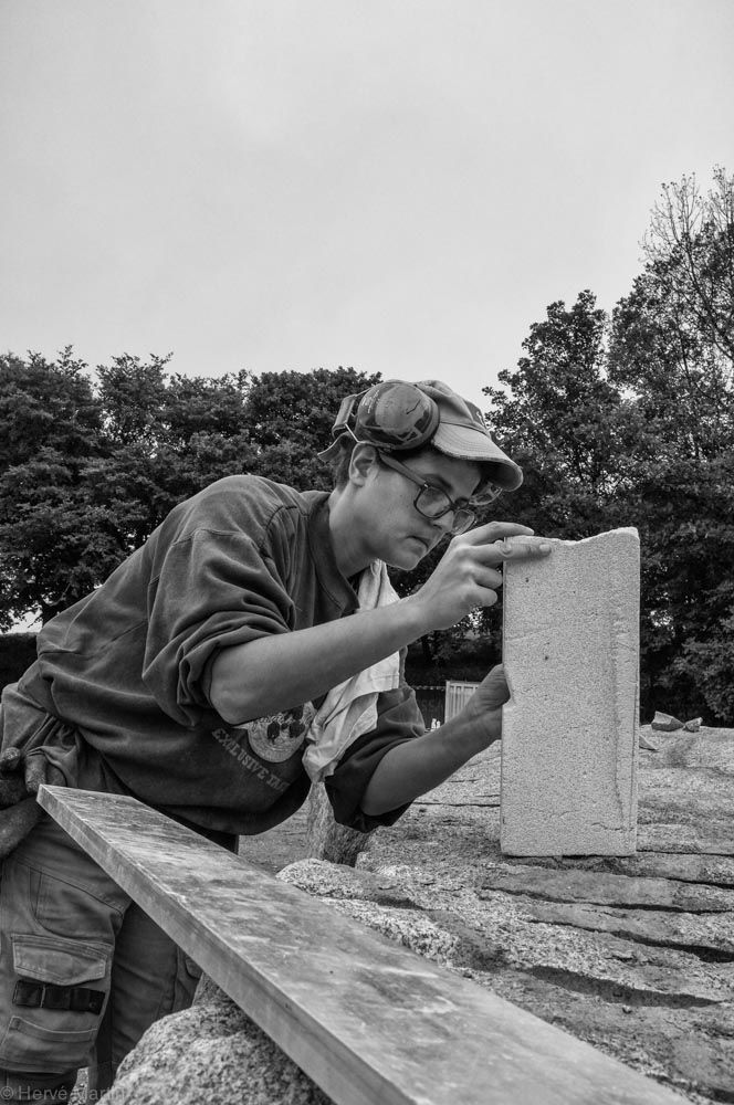 avant : le bloc de granite de Cléder / après : la sculpture installée