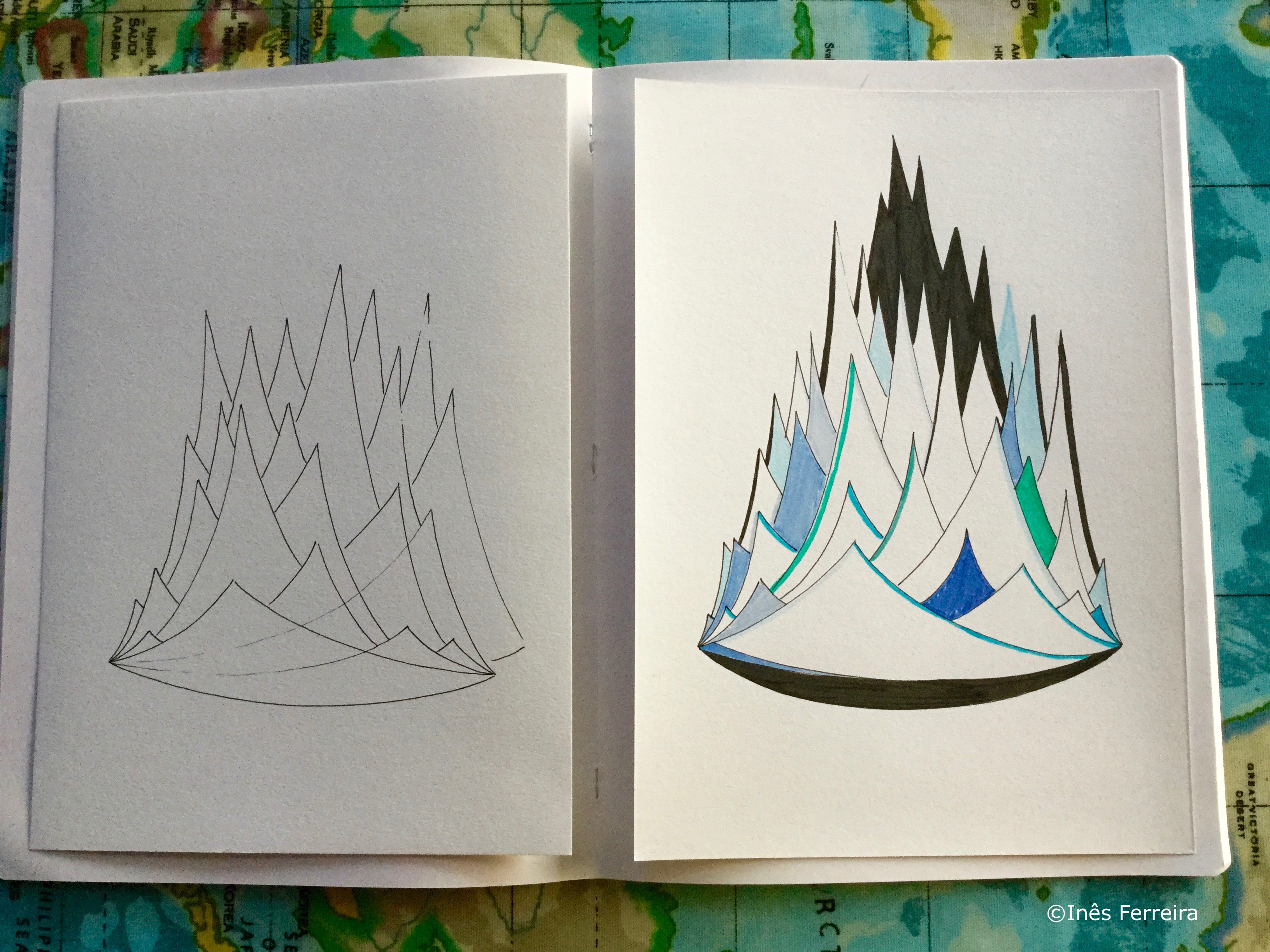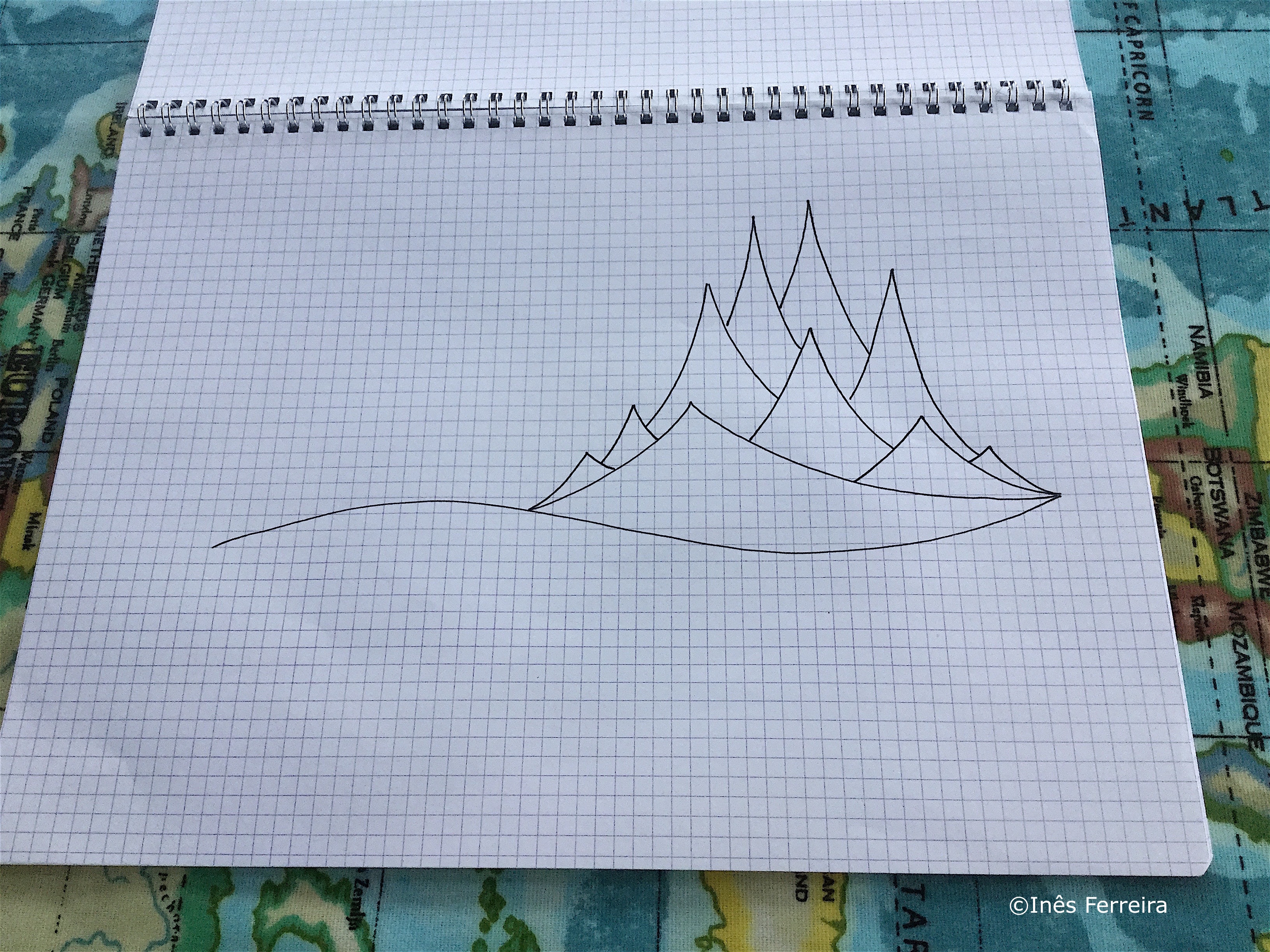 Never ending mountains. One after another, endlessly. I have mountains of drawings, pen and watercolor in different sizes of paper. Compulsively.